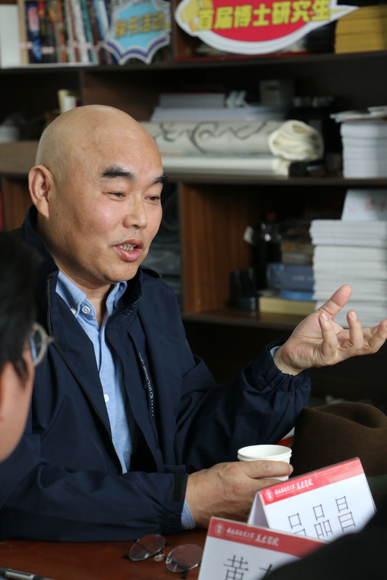 座谈中,吕品昌教授以“每一件作品都是独一无二的,学生也是一样”的育人理念开篇,结合自身从景德镇陶瓷大学首届研究生到中央美术学院教授的求学执教经历,分享了学术研究中的坚守与创新心得。他鼓励博士生们既要扎根专业领域深耕细作,传承中华优秀传统文化,又要拓宽国际视野,将个人研究与国家文化战略需求紧密结合,在艺术创作中追求 “差异” 与 “个性”。