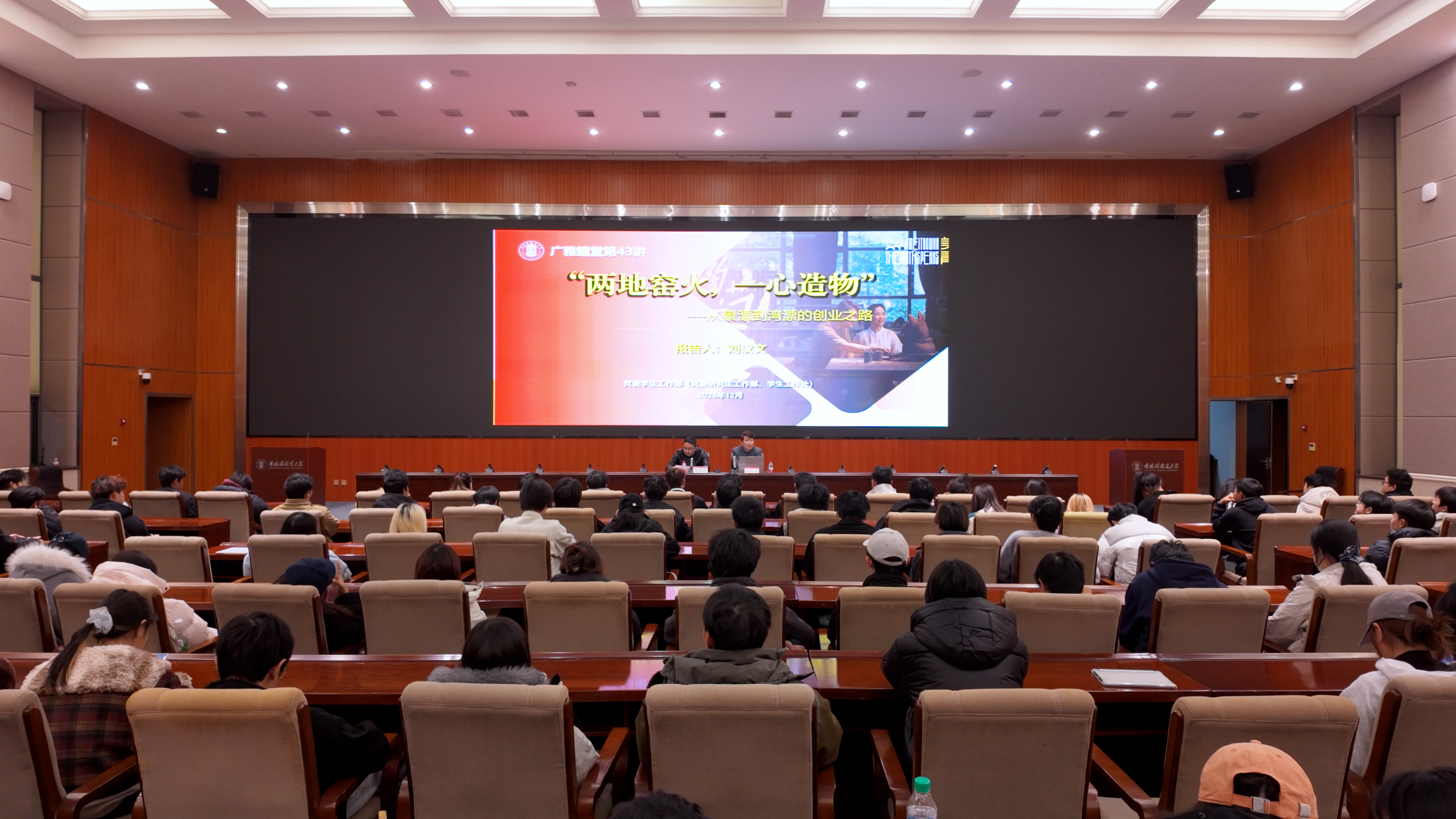 2025年12月8日下午,我校2006级校友、国家一级技师、一嘉陶艺创始人刘仪文应邀返回母校,做客“广雅鳣堂”第43讲,为师生带来题为《两地窑火,一心造物——从景漂到湾漂的创业之路》的专题讲座。本次活动由党委学生工作部(党委研究生工作部、学生工作处)与校友联络服务中心共同举办,200余名师生代表到场聆听。