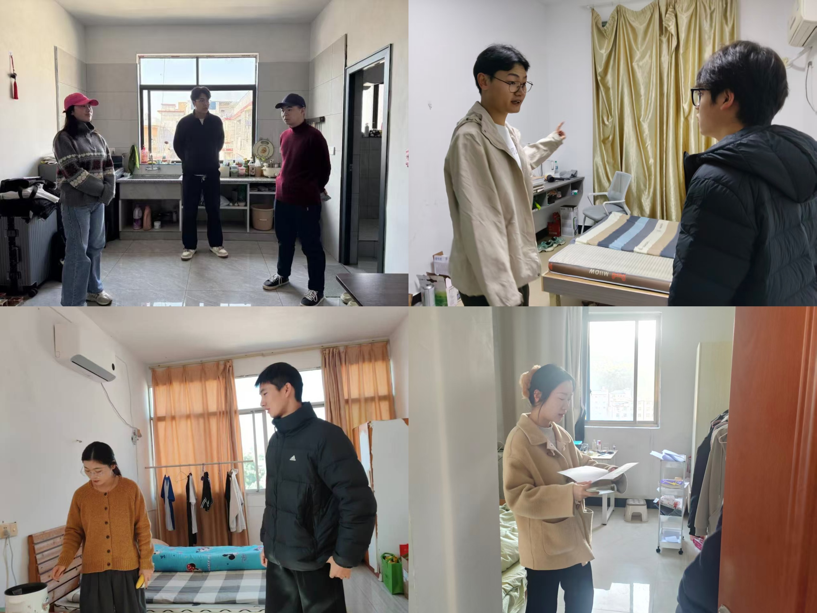 各学院(部、系)高度重视,走访前全面细致摸排了校外住宿学生的基本信息,建立动态台账。走访过程中,各学院(部、系)工作组深入学生租住的公寓、小区等场所,重点检查了住宿环境、消防设施、电器线路等情况,并与学生面对面交流,了解学生学习生活、思想动态与实际困难。走访人员还现场开展安全教育,提醒学生增强安全意识,注意人身财产安全、用电安全、出行安全、饮食安全、社交安全等,自觉遵守有关管理规定,保持良好生活习惯。