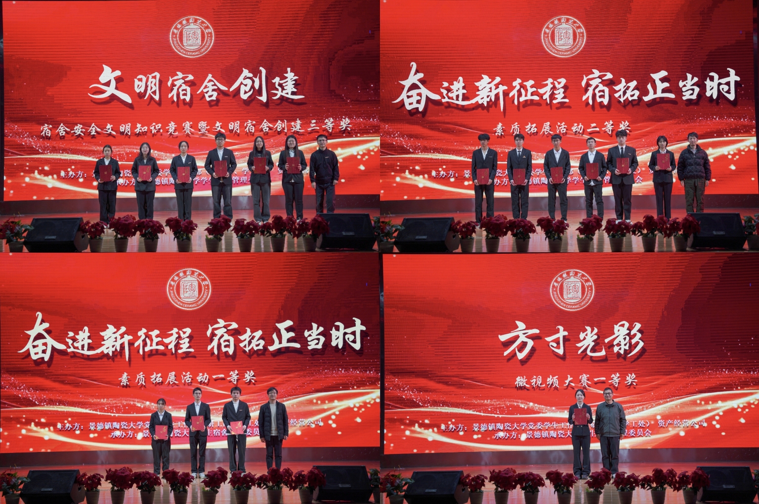 典礼依次颁发了素质拓展活动、安全知识竞赛、微视频大赛的团体奖项,以及本科生与研究生“最美寝室”“星级文明寝室”等荣誉。