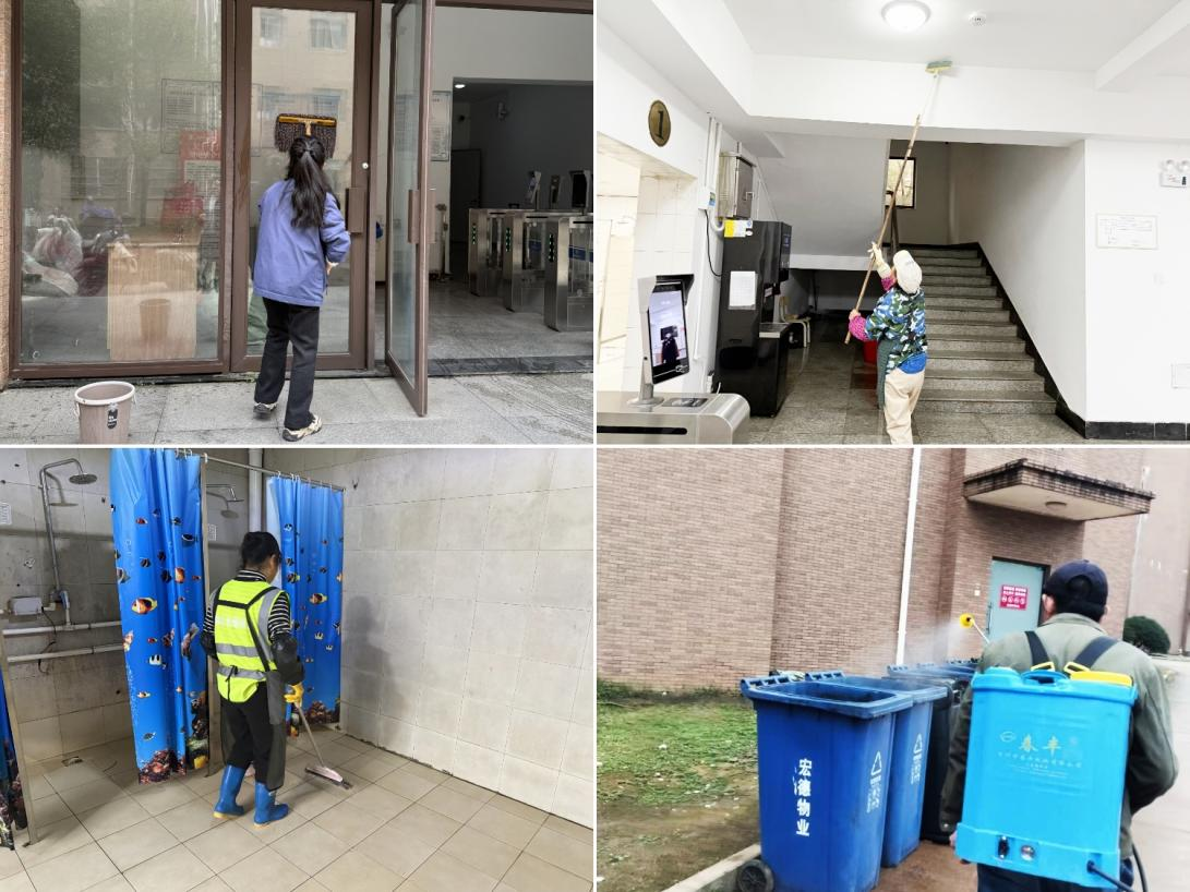 本次准备工作坚持全覆盖、无死角、高标准原则,聚焦环境卫生、设施检修、安全防控三大核心,统筹推进、逐项落实。在环境卫生方面,保洁人员对宿舍门厅、走廊、淋浴间等公共区域进行深度除尘保洁,重点清理排水口等易滋生细菌的卫生死角,并同步开展公共区域预防性消杀,切实降低春季传染病传播风险。