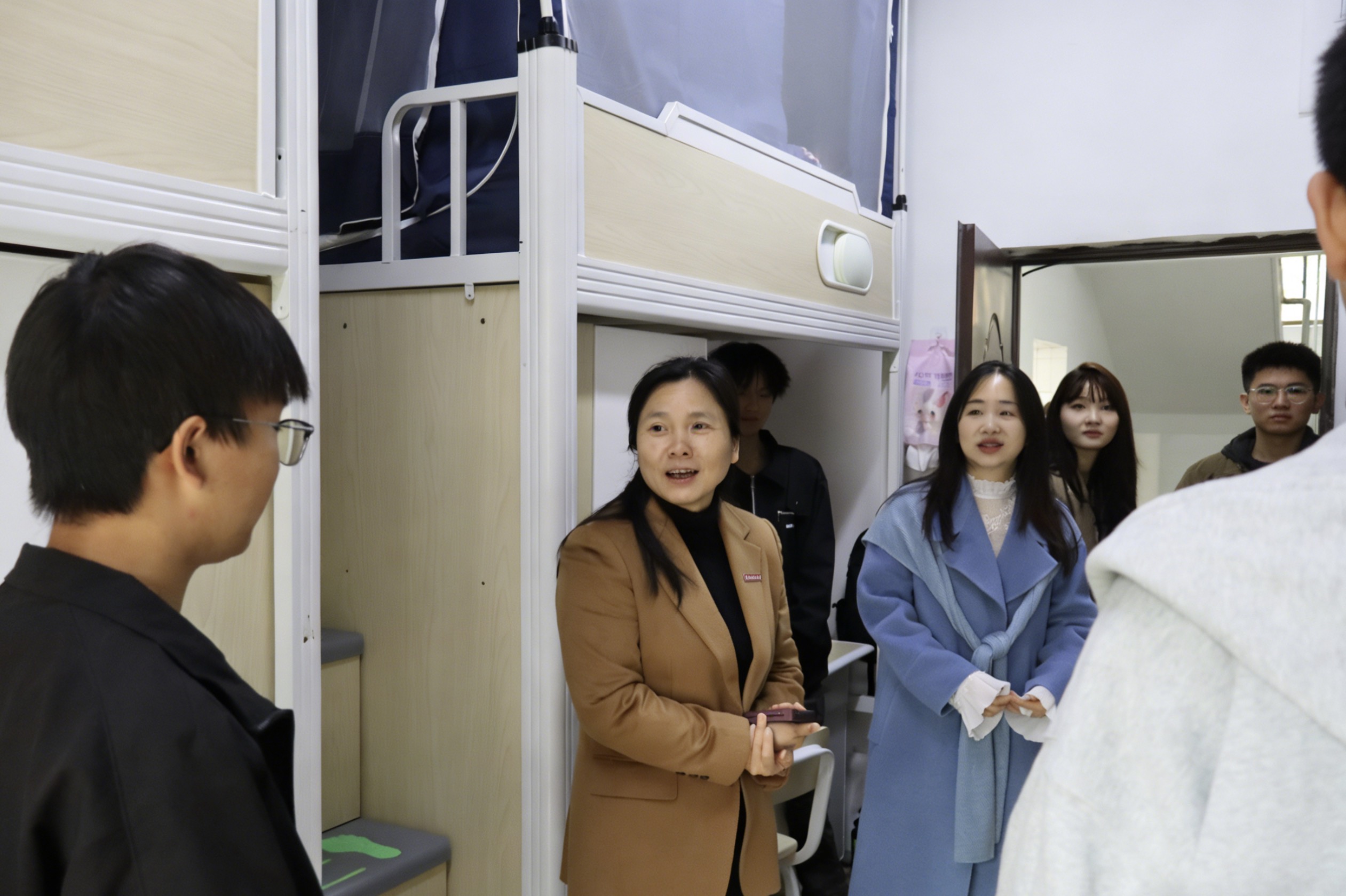 在走访学生宿舍过程中,陈云霞与学生亲切交谈,细致询问入学以来的学习适应情况、课程掌握程度及日常生活安排。她勉励同学们要夯实专业基础,注重理论与实践结合,尽快适应大学学习节奏,合理规划大学生涯,在智能制造这一前沿领域练就过硬本领。陈云霞还叮嘱同学们注意宿舍安全,营造良好寝室氛围,遇到困难及时向学院和老师反映。