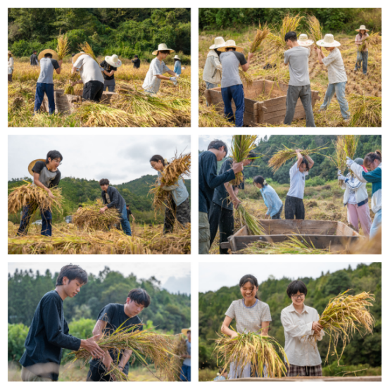 割稻结束后,同学们还参与了稻谷的脱粒、晾晒等后续环节,完整体验了“从稻田到谷粒”的收获过程。“当亲手握住那沉甸甸的稻穗时,内心充满了成就感,这是课堂上无法获得的独特体验,这堂‘田间课’,让我把对粮食的敬畏、对劳动的尊重深深种进了心里。”23级无机非金属材料专业樊嘉豪表示。活动最后,同学们互相分享劳动体会,并在金色的稻田旁合影留念。