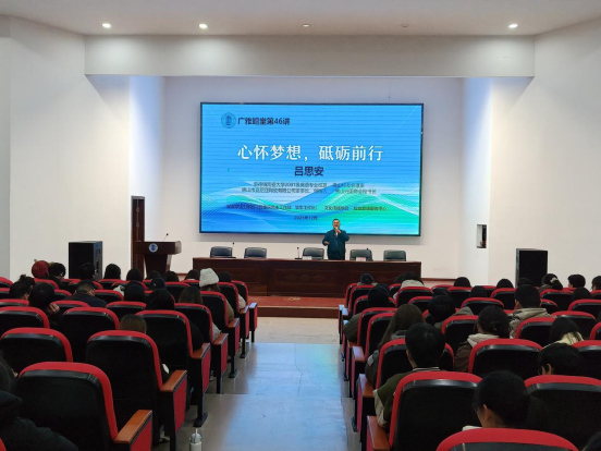 12月24日下午,2001级英语专业校友、佛山市嘉尼亚陶瓷有限公司创始人吕思安做客我校广雅鳣堂作题为《心怀梦想,砥砺前行》的专题讲座。本次活动由党委学生工作部(党委研究生工作部、学生工作处)与校友联络服务中心共同主办、文化传播学院承办,200余名师生代表到场聆听。