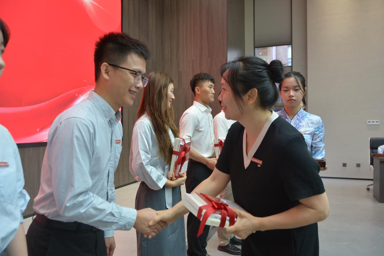 入职仪式在雄壮嘹亮的国歌声中拉开序幕。陈云霞为每位新入职辅导员赠送《高校辅导员的七项修炼》《高校思政骨干讲案例》《温暖你的大学时光》三本书籍为入职礼物并寄语辅导员:学校辅导员队伍是一支年轻有活力的队伍,也是一支能吃苦能战斗的队伍,辅导员工作是一场爱的修行,要用心去关爱每一位学生,用爱去谱写人生新履历,希望大家在未来的工作中一同面对困难、迎接挑战,一起努力、成长。