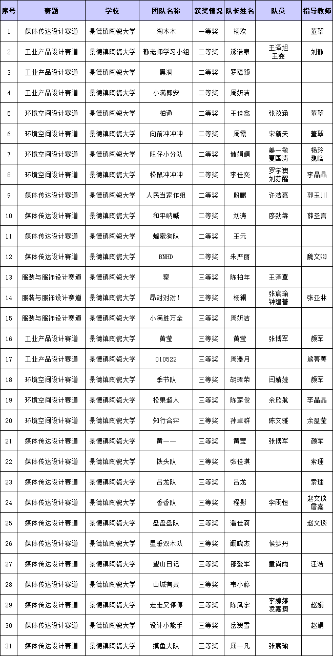本网讯(党委研工部余少奇、徐嘉)近日,第三届中国研究生“美丽中国”创新设计大赛获奖名单揭晓,我校131支参赛团队经多轮激烈角逐后,共有31支队伍获奖,其中一等奖1项,二等奖11项,三等奖19项,获奖队伍总数较去年成绩24项显著提升,连续三年位居江西省高校第一。