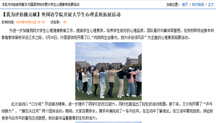 语学习、生活的桥梁,通过专业的心理辅导与咨询服务,不断提升学生心理健康教育水平,打造正面引导为主的心理健康教育模式,拟开展大学生乐观主义精神培育方面的课题研究,更好服务大学生成长成才成人。